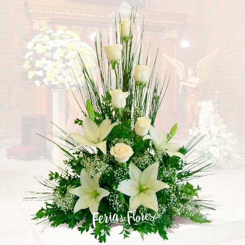 COP$184.900Este delicado y sobrio Arreglo Fúnebre Piedad es ideal para expresar tu más sentido pésame, esta elaborado con