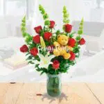 Let your heart bring out those beautiful feelings, for that person you love so much, with this beautiful combination of Vase with 18 Multicolored Roses with